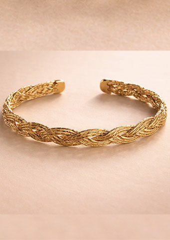 Elevate your wrist stack with the Dayo Twist Bracelet, a bold yet refined gold braided cuff designed for the woman who appreciates timeless luxury. Featuring an intricate multi-strand twist design, this sculptural bracelet reflects light beautifully, creating dimension and effortless sophistication.