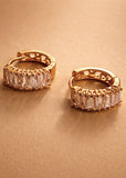 The Capri Gold-Plated Huggie Earrings are a refined statement of modern luxury. Designed with precision-set baguette-cut stones and finished in high-quality gold plating, these earrings offer a brilliant balance of elegance and everyday wearability. Their sculptural silhouette hugs the ear comfortably, delivering a polished, high-end look without excess weight.
