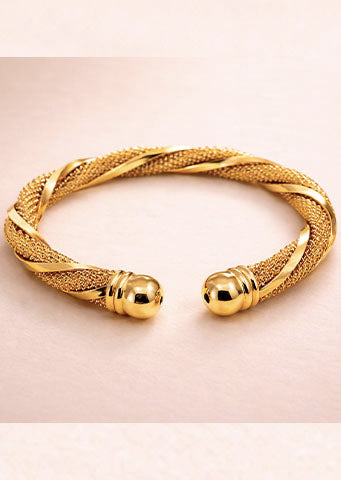 The Worthington Bracelet is a timeless statement of refined elegance. Featuring an intricate twisted gold design with a textured mesh finish, this open cuff bracelet blends classic craftsmanship with modern sophistication. Its polished gold accents and sculptural silhouette create a luxurious look that feels both elevated and wearable.