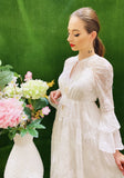 This beautiful resort bell sleeves midi dress is perfect for vacation or a beach wedding. Features Embroidery flowers throughout, Drawstring waist with fringes and wooden tassels, and V-Neckline with a relaxed fitting. Style with your favorite heels or flats (pop a color).
