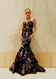 The "Mia" Strapless Floral Fishtail Gown