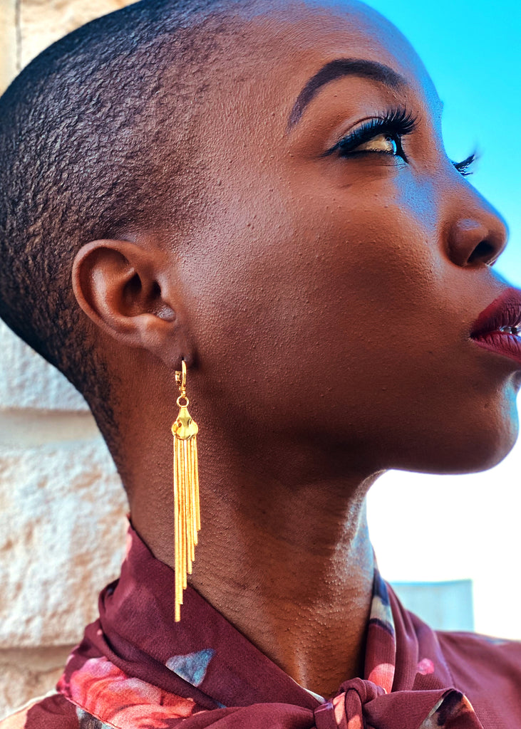 Experience true luxury and sophistication with our "Georgie" Gold Plated Fringe Earrings. Adorned with elegant fringe pieces, these party earrings are the perfect statement piece for any occasion. Elevate your style and add a touch of art to your ensemble with these exclusive earrings.