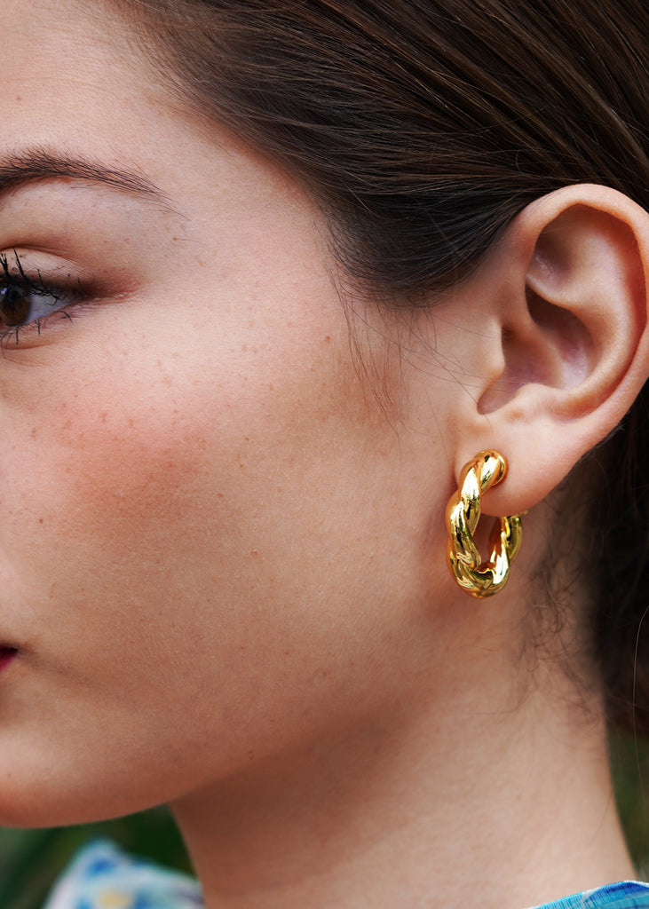Elevate your everyday look with our "Hayden" Gold plated Semi Hoop Earring. Lightweight and hypoallergenic, these earrings are also tarnish-free, ensuring long-lasting wear. Perfect for any occasion, these earrings are a must-have for the modern and sophisticated woman.