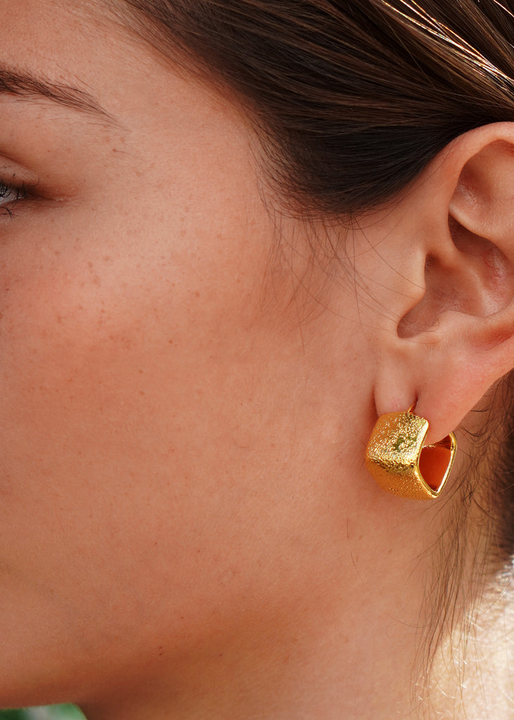 Elevate your style with our "Luca" Textured Box Hoops. Expertly crafted into a unique cube shape with a grainy texture, these hoops are more than just an accessory – they're wearable pieces of art. Perfect for making a bold statement and standing out from the crowd.