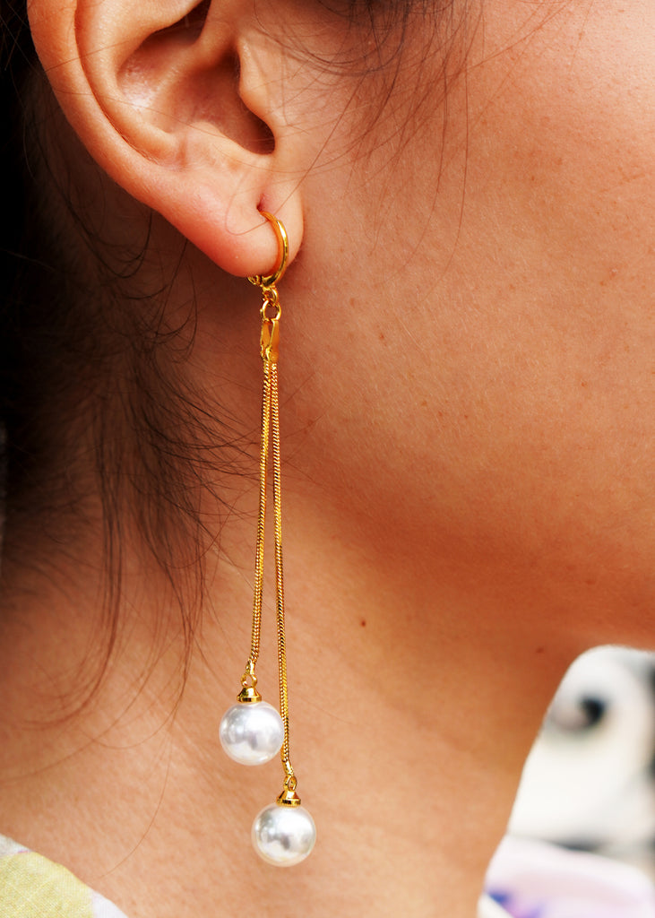 Add effortless elegance to your outfit with the "Olivia" Pearl Drop Earrings. The long gold plated chain adds a touch of luxury, while the pearl drop and rope detailing offer a timeless and sophisticated look. These earrings are tarnish-free and perfect for your next trip to Paris.