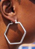 Elevate your style with the "Chepi" Hexagon Plated Hoop, dipped in lustrous white gold for a refined finish. Available in 2 sizes, these geometric hoops offer a modern twist on classic elegance, perfect for adding subtle sophistication to any ensemble. Their unique shape and polished plating make them a versatile accessory for both day and evening wear.