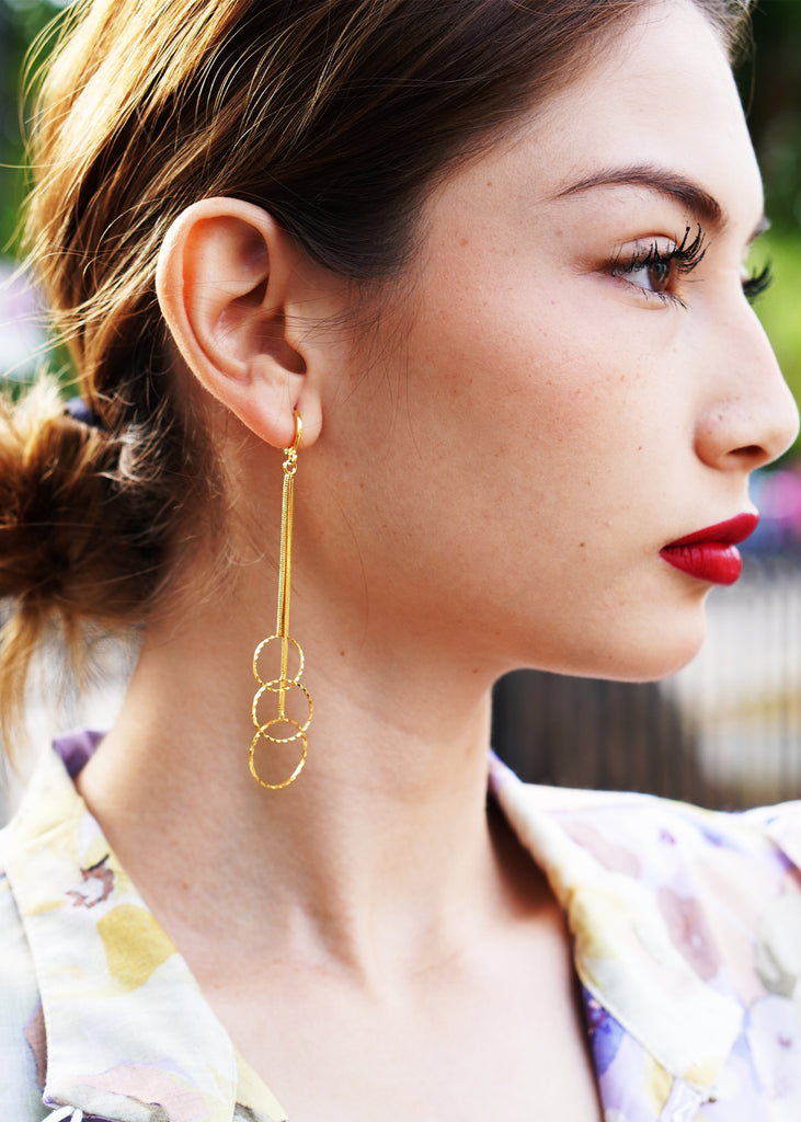 The "Dylan" 3 tier symmetrical Drop Gold Plated earring