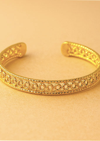 Elevate every outfit with this elegant, high-shine gold filigree bracelet—a must-have accessory for the modern woman who loves classic sophistication.