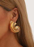 The "Samantha" Swirl Statement earring, a heavy duty piece that will elevate any outfit. With its swirling design, it is the perfect accessory to make a statement and impress. Add a touch of luxury to your wardrobe with this exclusive earring.