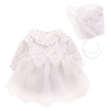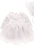 The Joy Christening long sleeves Dress is your little princess' outfit for that special occasion. Full Collar with eyelets and Bow in Front Center. The color is White only with Matching bonnet. Style with white booties.