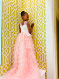 The Liliana Kids Gown is a beautifully feminine dress, with layers of frothy tulle in a magical pastel hue. The ruffle panels create a flattering textured playful look. Look no further for your ultimate dress. This gown is perfect for Cotillions, Communion, Junior Prom. Due to the delicate nature of the embellishment on this garment please handle with care.