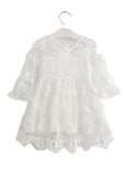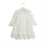 The Naomi Lace Flower girl dress dress is great for that special occasions/Photo Shoot, Birthday parties, Communion, and Weddings. Round Neck Dress with long bell sleeves perfect for your princess. Knee Length.