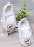 This pair of Pearl shoes is perfect for any Formal Event. , Babies' Blessing/First Party. Pearl Bling Baby Toddler Dress Shoes with Rhinestone Sparkle. First walking shoes for Baby Newborn Girls.